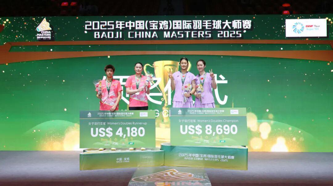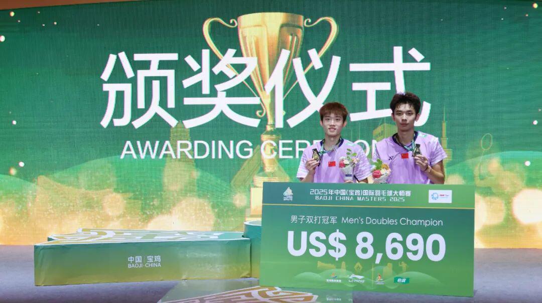 2025年中国(宝鸡)国际羽毛球大师赛昨天下午结束,中国队在男单、男双、女双三个项目实现会师,最后夺得3金5银。其中,男双林祥毅/胡珂源和女双王汀戈/罗意都是首次夺得世界巡回赛冠军。