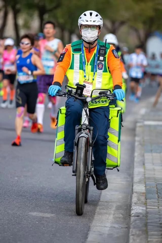 315名急救志愿者和120名急救跑者分布在各关键位置,他们既能第一时间发现异常,也能在奔跑中陪伴和鼓励选手。